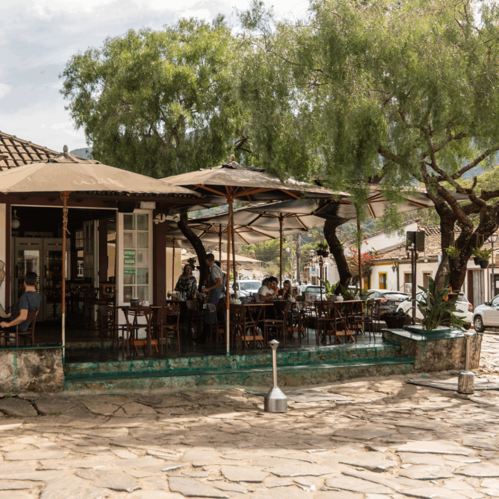 De lá se tem uma bela visão da movimentada Praça cercada de casas históricos, é para acompanha um chopp bem gelado da Cidade de Tiradentes deliciosos Petiscos